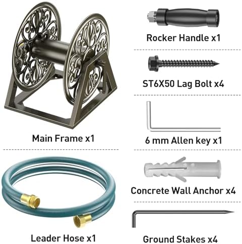 – **Easy Installation:** This versatile hose reel can be mounted on the wall or set on the floor, providing flexibility in your garden layout. All necessary mounting hardware is included for quick and hassle-free installation.