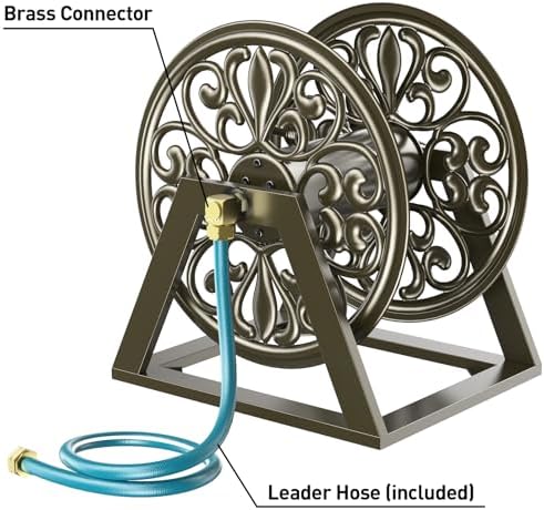 Transform your gardening experience with the GOFORWILD Garden Wall/Floor Mount Hose Reel. This decorative and heavy-duty hose holder is not just a practical tool, but a stylish addition to your outdoor space. Designed to accommodate up to 200 feet of 5/8-inch hose, it provides a seamless solution for storing and organizing your garden hose while keeping it neatly tucked away when not in use.